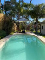 - Piscina de agua salada (sin cloro), calefaccionada (si lo desean) con bomba de calor; 2 decks de madera con butacas, reposeras sombrillas y espacio para disfrutar del aire libre.