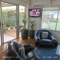 Casa con cocina comedor, living, 1 dormitorio grande, 1 baño completo, churrasquera techada, Directv, 2 aire acondicionado en dormitorio, y living alarma, cámaras, Internet, hermoso parque cerrado, vajilla, manteles, lavarropas, microondas, supermercado enfrente,.ahora con piscina. Luz aparte al entregar $1.500 pesos x limpieza y lavados sábanas, toallas. Tel..