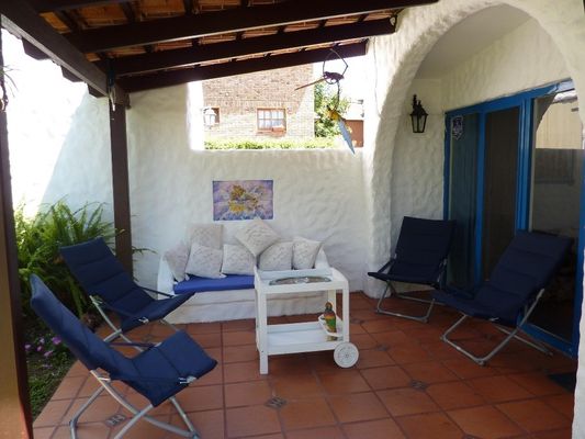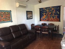 Equipada: - Alarma con respuesta. - Aire acondicionado 12 vtw en el living. - WI-FI Y NETFLIX. - Heladera con freezer. - Microondas. - Living TV smart 32 pulgadas. - Lavarropas automático. - Ventiladores de techo en todos los ambientes. Comodidades exteriores: Tres jardines: 1. Frente a la calle, con entrada para auto. 2. Interior al frente cerrado por muros y arcadas. Techo de teja francesa, equipado con sillas, mesa de jardín, banco con almohadones, hamacas paraguayas, etc. 3. Fondo: Parrillero, mesa de cemento y bancos, cubierto por gazebo de ratán, etc. ESTACIONAMIENTO PARA 2 AUTOS EN RAMPA.