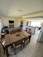 Excelente casa próxima al Mar!!! La casa principal cuenta con 3 dormitorios amplios, 2 baños, living-comedor, amplia cocina muy luminosa con salida al jardín, lavadero, cochera x2, amplia barabcoa super comoda y disfrutable, jardín cercado con piscina de 6 x 3 mts climatizada. Aire acondicionado en todos los dormitorios, wifi, Smartv, Muy bien equipada. Y tiene ademas un monoambiente con cocina, baño, lavadero, jardin. Ideal para dos familias!