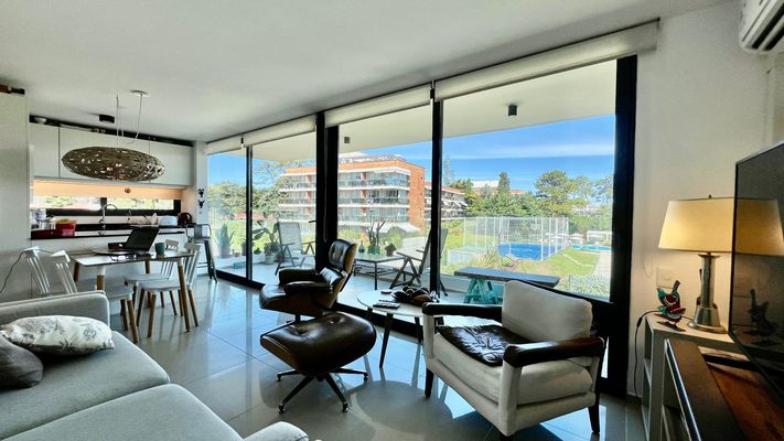 Cuenta con 2 dormitorios, 2 baños, 1 en suite. Living comedor amplio con cocina integrada. Gran terraza frontal con parrillero y amplio balcón posterior con vista al jardín.
