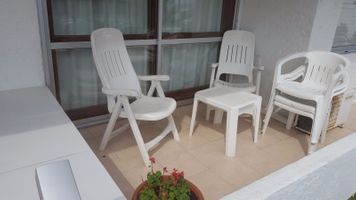 Apartamento en primera línea , terraza al frente , vista al mar , 2 dormitorios , 2 baños , cocina equipada ,Tv cable , aire acondicionado , lavarropas , garaje en subsuelo para 1 auto, parrillero en áreas comunes, cámaras de seguridad .