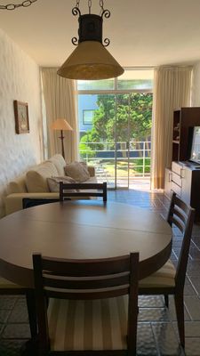 Cocina definida y totalmente equipada: vajilla completa, cocina a gas, microondas, heladera con freezer y demás electrodomésticos.