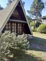 La cabaña tiene un amplio terreno cerrado con sombra, aire acondicionado, WiFi, Direct TV, Smart TV, cochera con hamaca de madera y hamacas paraguayas, duchero exterior, dos baños y excelente barbacoa con alero, cómodos sillones, parrillero, heladera, horno y agua caliente.