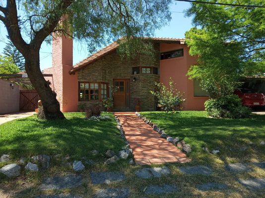 Casa de dos pisos, tiene dos cocheras, jardín en frente y fondo cerrado por muro perimetral. Gran barbacoa cerrada completa con loza, copas italianas, cubiertos, bandejas y paneras. 3 Mesas con sillas. Heladera grande con freezer y jarra eléctrica para agua. Sofá con mesita central, etc.