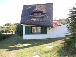 Gran cabaña a una cuadra de la playa La Aguada, balneario La Paloma departamento de Rocha. Posee jardín con vista a la playa, terraza y un fondo, amplio y cerrado, con parrillero y pérgola. La casa tiene 3 dormitorios todos con aire acondicionado uno de ellos es en suite y otro tiene cuchetas con cama marinera. 2 baños y garaje. Está equipada para 7 personas. Cuenta con 2 heladeras una de ellas con freezer, cocina a gas y horno eléctrico, lavarropas programado, microondas, tv cable (DIRECTV), Internet (WIFI) y demás electrodomésticos. Muy cómoda y fresca en verano por su alto techo de quincha y su proximidad al mar.