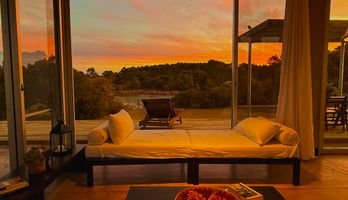 Todo este conjunto hospeda un total de 6 personas que disfrutaran de la costa del lago, los bosques de pinos, el Mar, Playa exclusiva, las Cárcavas y los distintos colores de verdes que conforman un marco visual majestuoso y cambiante, que se acentúa con las maravillosas puestas de sol reflejado en el lago.