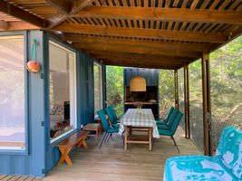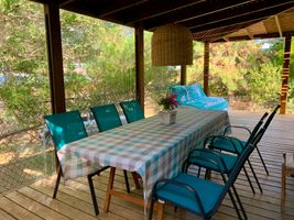 Casa elevada acceso con 5 escalones, cuenta con 3 dormitorios pequeños con placard, cocina integrada y bien equipada, living comedor, baño completo con calefón, televisión con Directv prepago. Aire acondicionado en living y en uno de los dormitorios. Ventiladores en los otros 2 dormitorios. Cuenta con ducha exterior cerrada con agua caliente, práctico para el verano. Deck con parrillero muy cómodo y practico. Entorno tranquilo. Lugar para estacionar autos en el terreno. A 3 cuadras del mar.