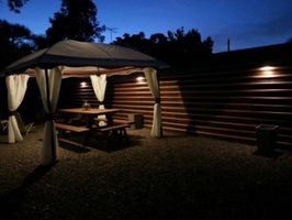 Cuenta con crerca en todo el perimetro ,muy iluminada ,porton corredizo automatico para vehiculos y pergola de madera con policarbonato para estacionamiento de ( 6 x 4.50 mts) .El alajamiento interior es totalmente nuevo y el entorno es muy tranquilo cerca de la playa ideal para descanso.