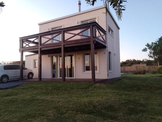 En planta baja se encuentra el baño, la cocina totalmente equipada, living comedor integrado con estufa a leña, sofá cama, juego de comedor para 6 personas, grandes ventanas con vista al mar y salida al deck. Al costado de la casa se encuentra un espacio techado donde esta el parrillero y horno de leña con amplia mesa y sus bancos correspondientes. En el fondo está ubicada la piscina de agua salada climatizada.