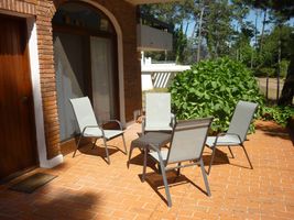 Lugar exterior al fondo con mesa (8 sillas) y parrillero.