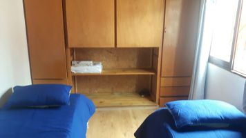 Es un apartamento amueblado de dos ambientes (living y comedor) +cocina completa + dos dormitorios y un baño.