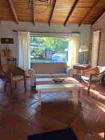 DISPONIBLE A PARTIR DEL 15/02/26. Chalet Pta. Colorada para 5 personas, a una cuadra del mar, totalmente equipado. Consta de 2 dorm.(uno matrimonial en planta alta y otro con 3 camas en p.baja), 2 baños, amplio liv. comedor con estufa a leña, cocina, cochera, deck, barbacoa, amplio jardín verde que rodea la casa. Todo en excelente estado (la casa y el equipamiento ).. Enero únicamente por quincena