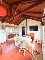 Hermosa casa de 2 dormitorios con parrillero, TV Directv pre pago por cuenta del inquilino, baño completo, cocina integrada al living como se ve en las fotos, vista con ventanales hacia el océano a 200 metros de la Playa de La Viuda. Casa con alarma.