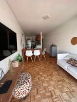El alojamiento cuenta con dos dormitorios, uno de ellos en suite, brindando confort y privacidad. El living comedor es amplio y luminoso, con salida directa a una terraza equipada con mesa y sillas, perfecta para desayunar al aire libre o relajarse luego de un día de playa.
