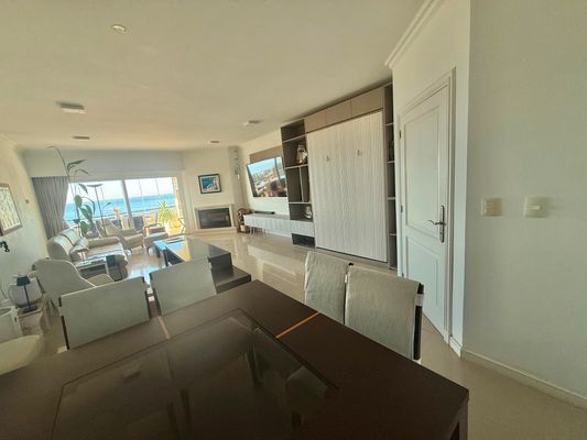 - dormitorio principal (cama Queen) en suite, baño doble cabina con bañera con mampara y jacuzzi, con salida a terraza de frente al mar en primera línea, con vestidor