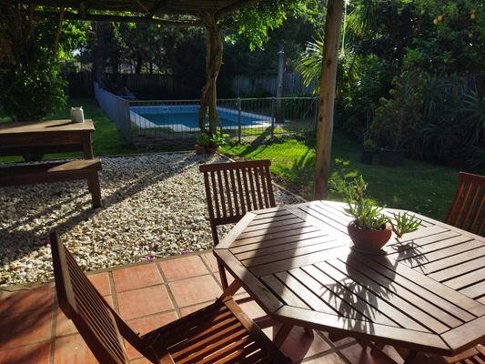 La casa cuenta con amplia piscina cercada para niños.