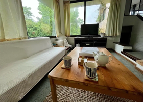 Relájate en este tranquilo lugar con la energía de los cerros y vista del atardecer sobre el mar.