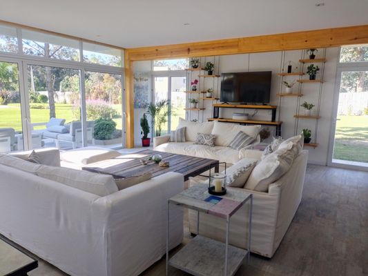 Casa de 5 dormitorios, 1 master suite, cama king con baño en suite, con balcón terraza hacia el jardín, 2 dormitorios con camas queen, 1 con 2 singles y 1 con 4 camas cuchetas. Importante recepción, comedor con cocina integrada y gran desayunador, 4 baños, jardín de 4.000 mts. totalmente cercado, piscina climatizada, galerías exteriores, 5 aires acondicionados, Wifi por fibra óptica, Direct TV, alarma en toda la casa, cocina súper equipada, lavarropas, microhondas, lavavajillas, tostadora, licuadora, cafetera, jarra electrica. Galeria con deck de 11 x 4 mts con reposeras, parrilla con glorieta y mesa para 12 personas. Ubicada en La Barra, Punta del Este, Uruguay. A 3 cuadras de la Playa Posta del Cangrejo, y del nuevo Shopping OH La Barra. Alquilo por minimo 15 días primera quincena de enero y luego minimo por semana. La Barra es un pequeño y simpático pueblo de playa y en su avenida principal se pueden encontrar acogedores lugares para comer y hacer shopping. Abundan los Ateliers de arte y antiguedades. Hay transporte público cerca.