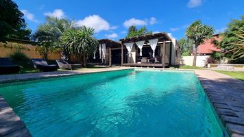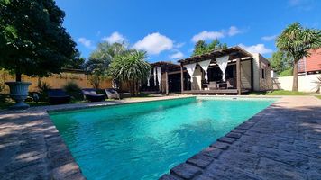 Casa para 5 personas, dos dormitorios más un sofá cama, 3 Aires acondicionados wi fi alarma piscina fogón garaje y portón eléctrico lavadero amplio jardín con pérgolas a 6 cuadras de la playa 2500 dólares la quincena en enero.