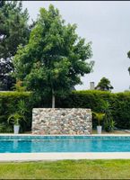3 dormitorios, 2 baños, living, cocina, comedor, patio con amplio jardín, piscina climatizada, parrilla interior y exterior y cochera. Casa y piscina totalmente accesible para silla de ruedas. Aceptamos mascotas predio totalmente seguro y cerrado.