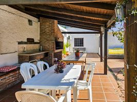 Uno de los cuatro dormitorios tiene baño en suite, con la comodidad e independencia de un monoambiente con cama de 2 plazas, sillón 3 cuerpos, mesa para 4 personas heladera con freezer , lavarropas y TV, se encuentra comunicado con la casa y además cuenta con entrada independiente y ventanal con hermosa vista al verde del jardín.