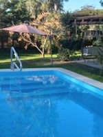 Casa recién contruida de dos plantas con tres dormitorios, dos baños ,cocina, living comedor y amplio parrillero. Magnífica piscina climatizada con un un entorno de jardin de 1000 metros, a 250 metros de la playa. A dos cuadras del almacén Calvette y a una cuadra del almacén Cuadrado. Un dormitorio se halla en la planta baja y los otros dos en la planta alta. Dos de ellos tienen cama matrimonial y el tercero una cucheta triple y un sofá cama por lo tanto la casa tiene capacidad má´xima para ocho personas.. Se trata de una casa ideal para dos familias. Un entorno muy tranquilo y silencioso con abundante sol y sombra.