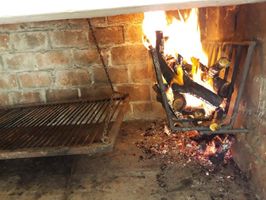 Jardín: Al frente, amplio y arbolado. Parrillero cubierto, con altura regulable y lavabo. Mesa y sillas de jardín.