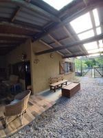 Lugar paradisíaco,para amantes de la naturaleza y tranquilidad ,es un parque de 1500 m cuadrados con dos casas y una barbacoa grande con parrillero horno a leña y cocina con horno eléctrico , tiene dos baños , dos calefones ,uno en cada casa , dos cocinas una en la casa delantera y otra en la.barbacoa ,las dos con horno eléctrico,2 heladeras una mediana frio humedo y otra en la casa del fondo grande con freezer,microondas ,jarra eléctrica ,licuadora , platos vasos , ollas , sartenes ,cubiertos ,tiene dos camas de dos plazas una en cada casa ,y 6 camas de una plaza ,capacidad total de 10 personas ,EL precio minimo es de 3500 pesos y va solo hasta 4 personas ,luego serian 400 pesos mas, por persona ,agregada hasta un maximo de 10 tiene una linda sombra compuesta por paraísos catalpa y eucalipto grande ,en el medio hay una alberca con peces que ofrece un hermoso lugar para la observación de aves que vienen a alimentarse y tomar agua, el agua es de manantial ,de un pozo de 17 m de profundidad y es bebible.