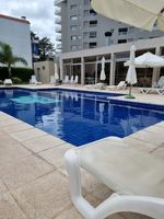El edificio esta a100 mts de playa brava altura de pda. 8. el apto tiene vista a la calle y a la piscina. -Cuenta con piscina abierta y piscina climatizada, sauna, sala de juegos, sala de reunión, gimnasio, cochera en garaje, cochera de cortesía. barbacoas frente a la piscina y además cancha de fútbol 5. Recepción . -3 ascensores.