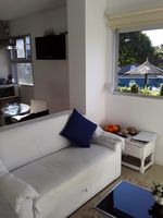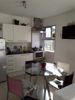 1 dormitorio con placard y cómoda. 1 baño. Kitchinette. Piscina. Con reposeras y sombrillas tipo quincho. Salón de juegos con ping pong, futbolito, pool. Gimnasio. Parrillero. Barbacoa. Porteria 24 hs. Aparcamiento en el predio.