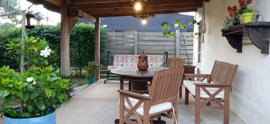 Cómoda y ambientada casa estilo campo, dentro de un terreno de 350 metros cuadrados. Ambientada por dos dormitorios, uno matrimonial y el otro con dos camas individuales. Living comedor, con hermoso parrillero rustico integrado, baño, lavadero, ducha exterior, horno a leña, luz y agua incluida. Totalmente equipada. Amplio patio, para estacionar, con sala de estar al frente. A cuadra y media de la playa, a 4 km de la barra, 18 de Jose Ignacio y 16 de Punta del Este.
