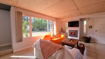 Planta baja gran living con calefactor de leña y toilette, conecta con comedor integrado a gran cocina y salida a patio techado con parillero, deck solarium con piscina climatizada y gran fondo verde, todo cercado.