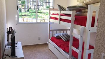 Casa moderna nueva de 3 años de construida, muy practica, cuenta con buen patio, piscina climatizada, Directv, mesa de ping pong, tres dormitorios uno con cucheta mas cama marinera, otro con dos camas mas cama marinera y un tercer dormitorio con una cama de dos plazas. Consta de dos baños, estar comedor y parrillero.