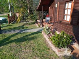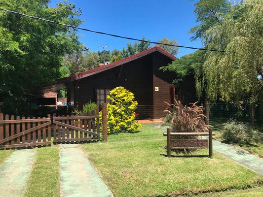 Cabaña con un apartamento al fondo. Total para 6 personas. Cabaña: 2 dorm. 1 baño, living comedor con cocina integrada, aire acondicionado en dorm. principal. Apartamento: 1 dorm. con aire acondicionado, 1 baño, un estar con frigobar, tv. Equipamiento: 1 TV led en cabaña con direct tv, un dvd y equipo de audio. Dos aire acondicionados,ventiladores de techo y 4 de pie. Electrodomésticos: Heladera c/freezer, cocina, lavarropas, microondas, licuadora, tostadora, cafetera, batidora, multiprocesadora. Vajilla para 12 personas. Fondo con parque, cercado, con parrillero, techado y horno de barro.Ideal dos matrimonios con hijos. Seña 50%, saldo al ocupar.