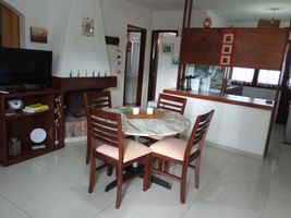 Es una casa cómoda para 4 personas, totalmente equipada y fácil de limpiar. El living comedor consta de dos sillones, mesa con 6 sillas, estufa a leña, acondicionador de aire 18 vtu y TV color 40 pulgadas.Está dividido de la cocina por un mueble pasa-platos con heladera con freezer, cocina a gas 4 hornallas, microondas, licuadora, tostadora, cafetera, más toda la vajilla para 6 personas.