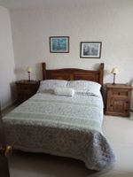 El dormitorio principal es en semi-suite con el baño, con cama doble, placard grande, aire acondicionado 9 vtu ,frazadas para todas las camas. El otro dormitorio con 2 camas marineras con 4 colchones, placard, mesa de luz, ventilador de techo y de pie.