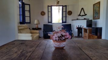Casa inglesa muy comoda y con los mejores atardeceres desde la terracita. La casa cuenta con living, comedor, un dormitorio cama matrimonial, con baño en suite, y un dormitorio con 2 camas simples, cocina (cocina convencional 4 hornallas y horno, microondas, tostadora, juego de ollas, heladera, vajilla, vasos y cubiertos para 12 personas). 4 sillas de playa, Direct tv y wifi (sólo de diciembre a marzo) (el directv sólo por mas de 10 dias fuera de temporada) . Además cuenta con un parrillero cerrado, independiente de la casa, con un dormitorio con cama matrimonial, baño y una cama individual. No se cobra agua ni luz aparte.